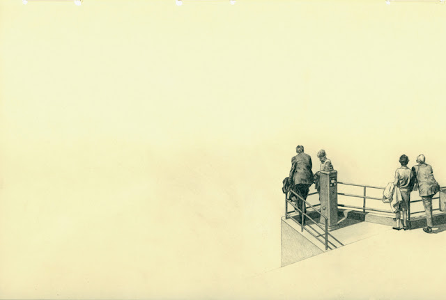 'Greg Eason's practice deals with a formal and conceptual dissection of space. His meticulously detailed and characteristically sparse drawings and paintings isolate and monumentalise narrative fragments and translate this into a microscopic frame. Objects become rendered as intricate miniature components within a vast negative space- creating an uneasy sense of depth and scale. His works often depict isolated characters gazing into some far-off yet imminent unspecified void. Objects are also presented as symbols- eggs and skulls are recurring motifs. The ideas explored within his practice comment upon mortality, spirituality, life, nature and the history of mankind.'
