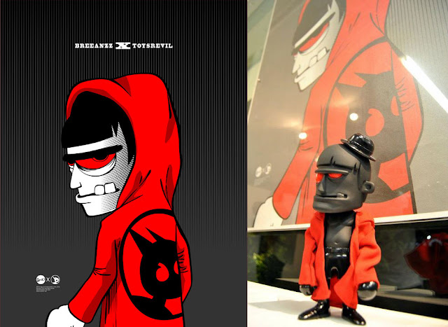 'With a base-body in matt and glossy black, the figure also features a fabric hoody/jacket with the TOYSREVIL-logo embroidered at the back! Am extremely happy with the result of this figure-collab, and wait till you see the packaging box! Availability details happening soon, folks! So stay tuned to TOYSREVIL! ~ Check out more images of the collabo HERE on my FB-album!'