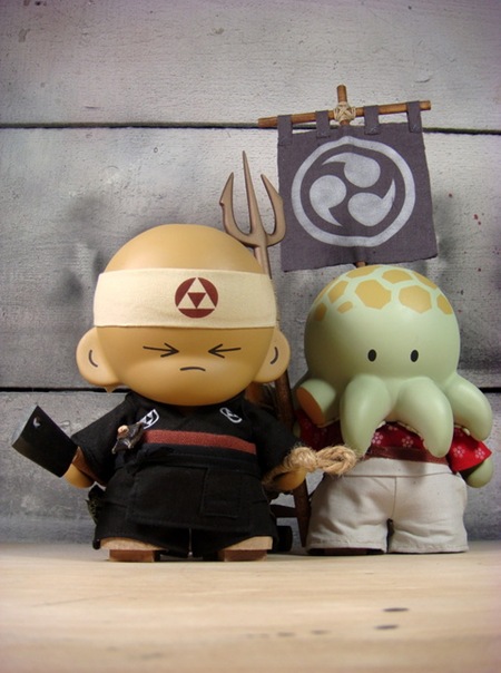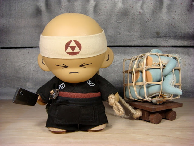 Amazing custom Munny Set by Huck Gee for a private collector. Introducing the Sushi Chef and Octo Samurai. This set also comes with a basket filled with Octo’s tentacles.
